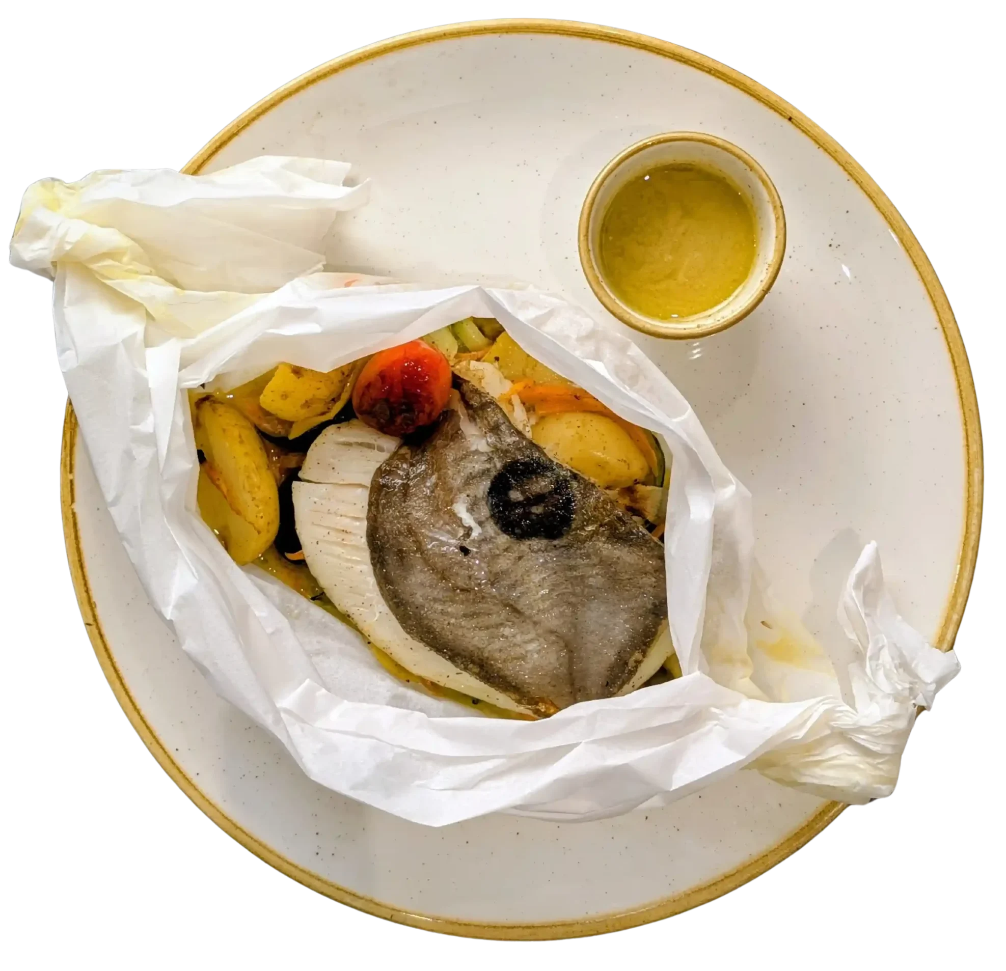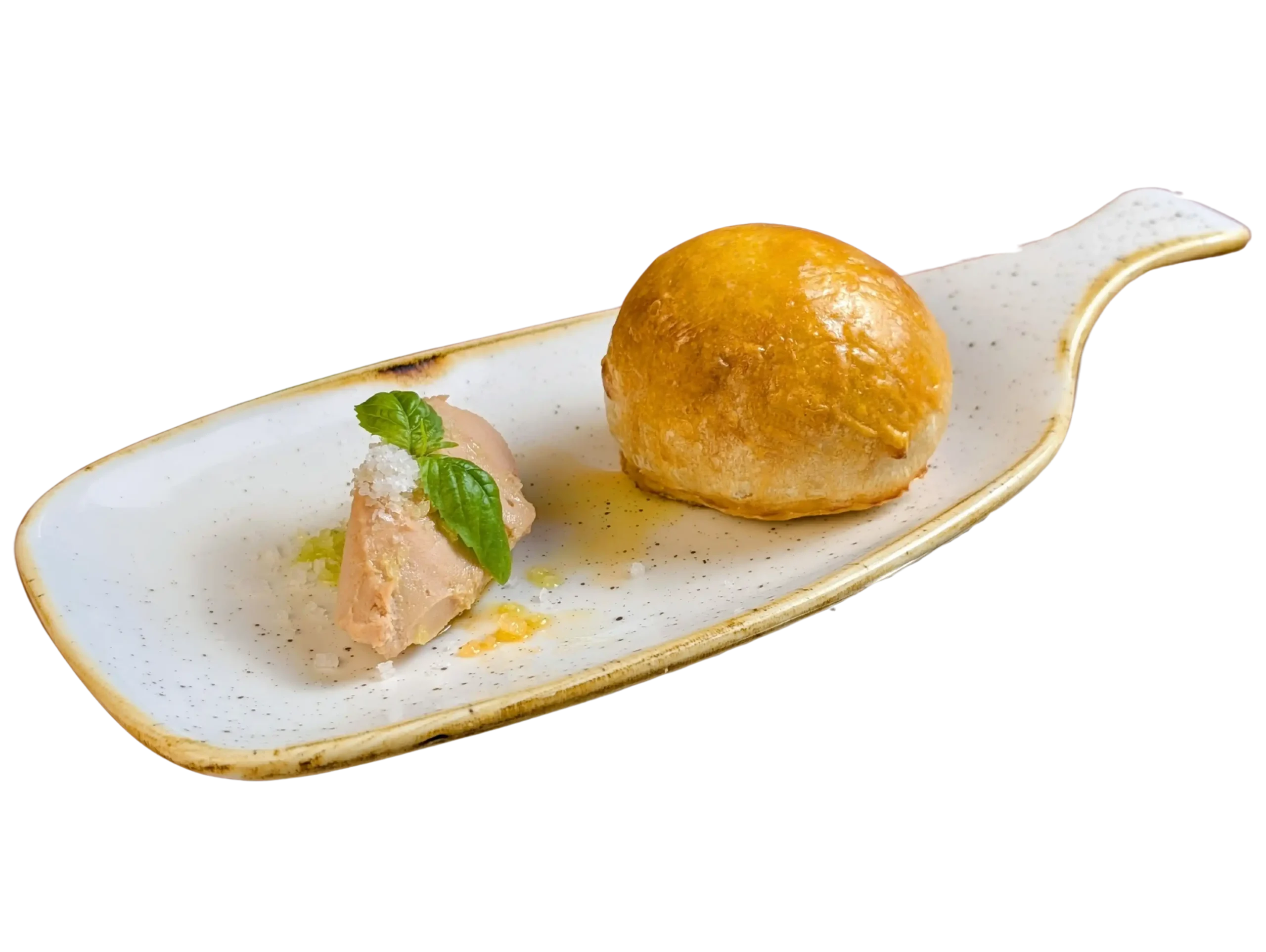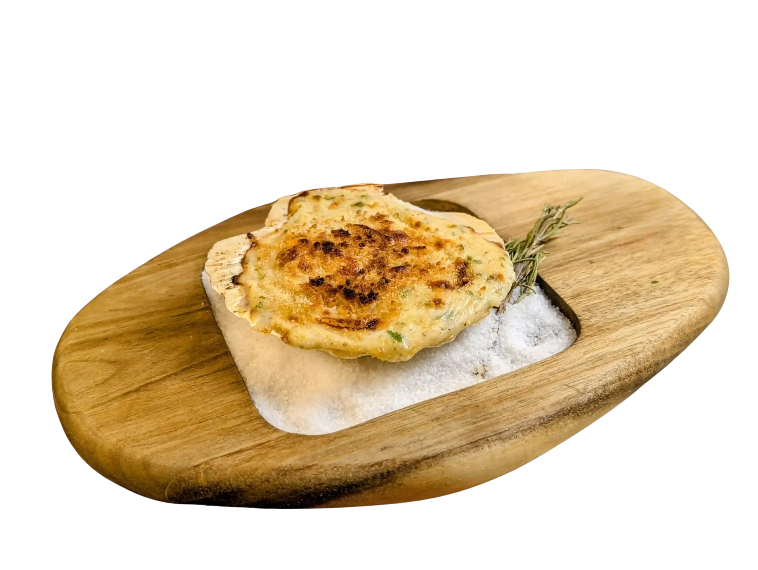 - Gratinated scallop with Adriatic shrimp in velouté sauce