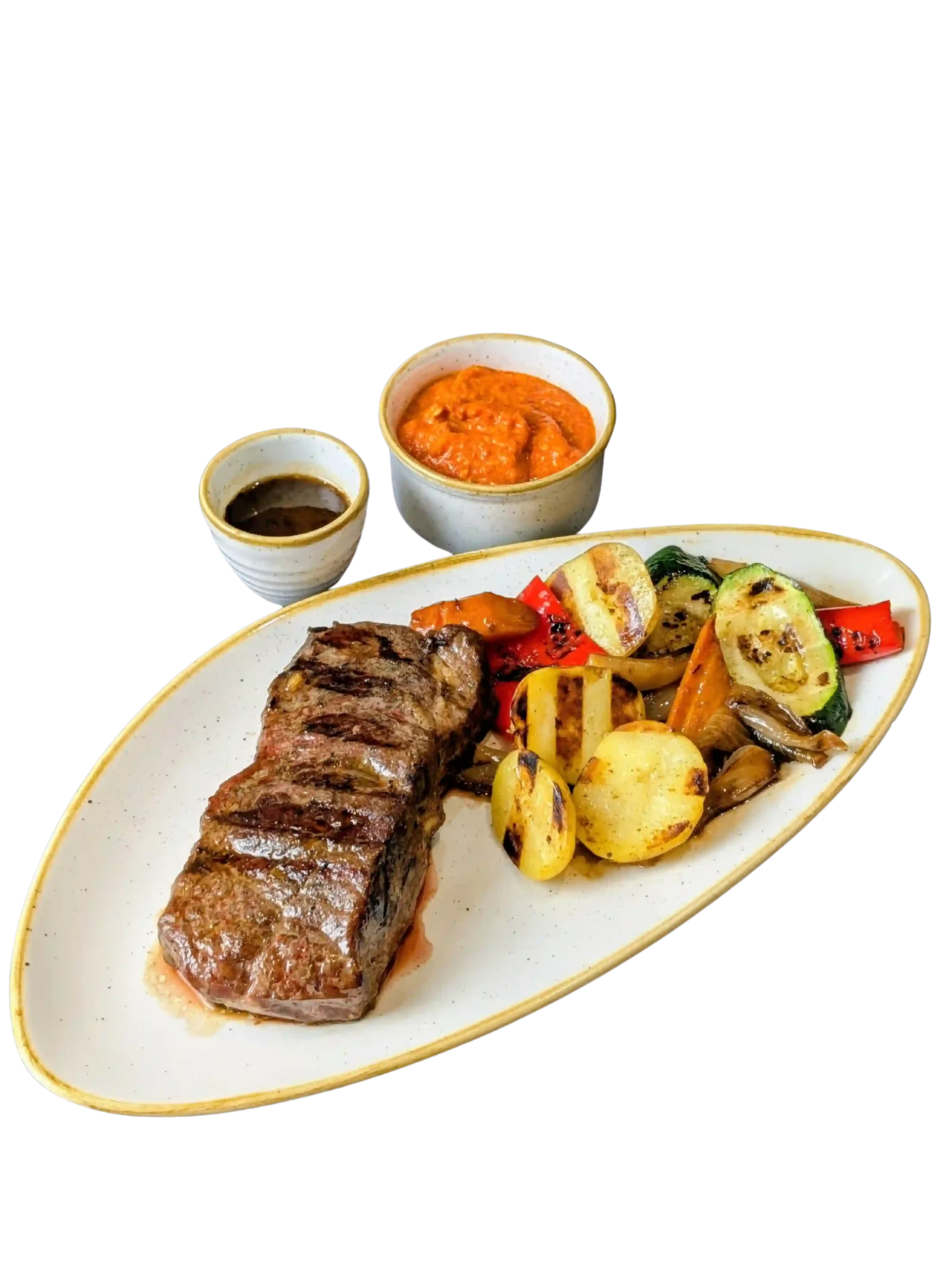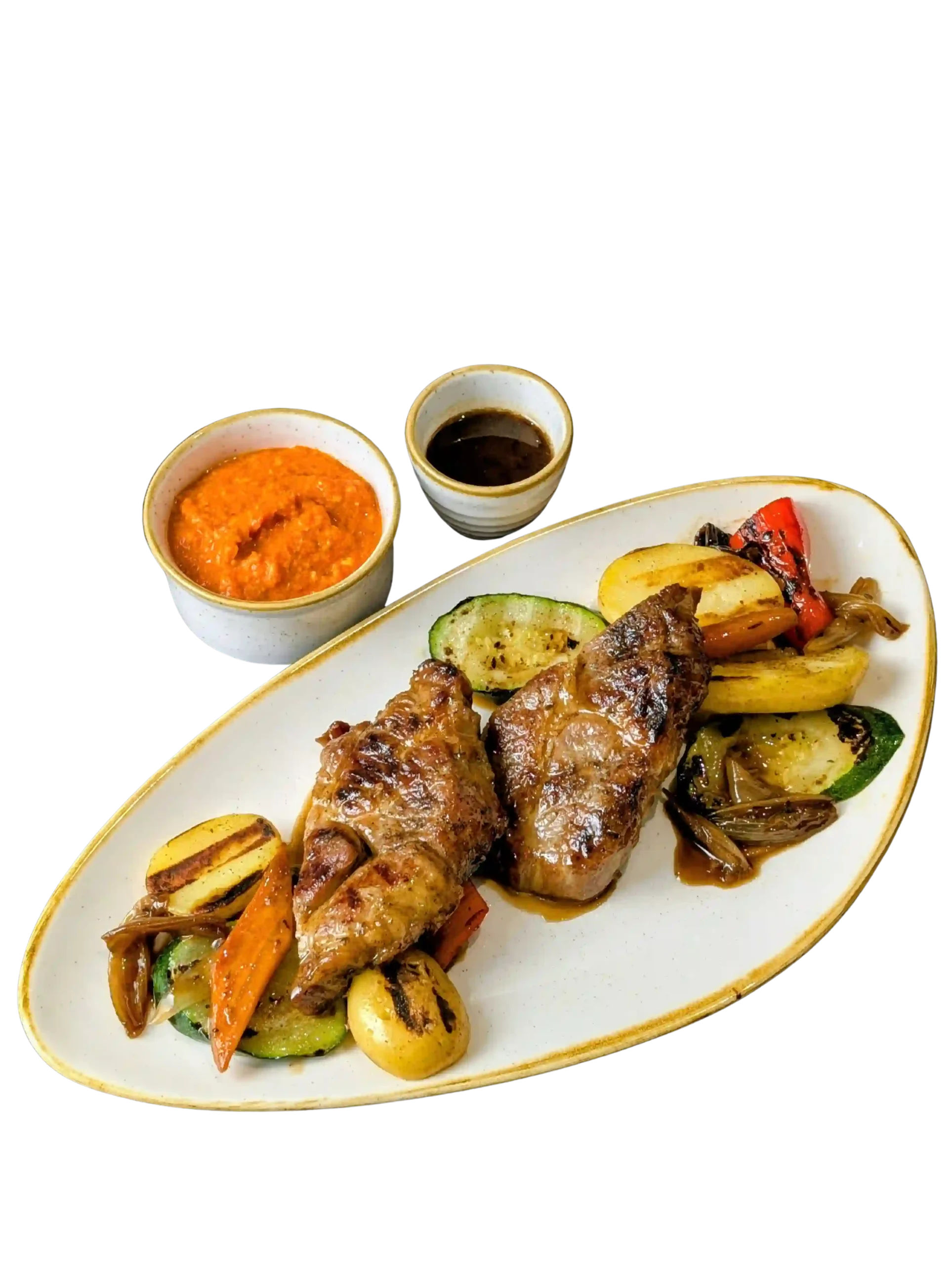 - Juicy roasted chicken fillet served with potato gratin and reduced chicken jus.