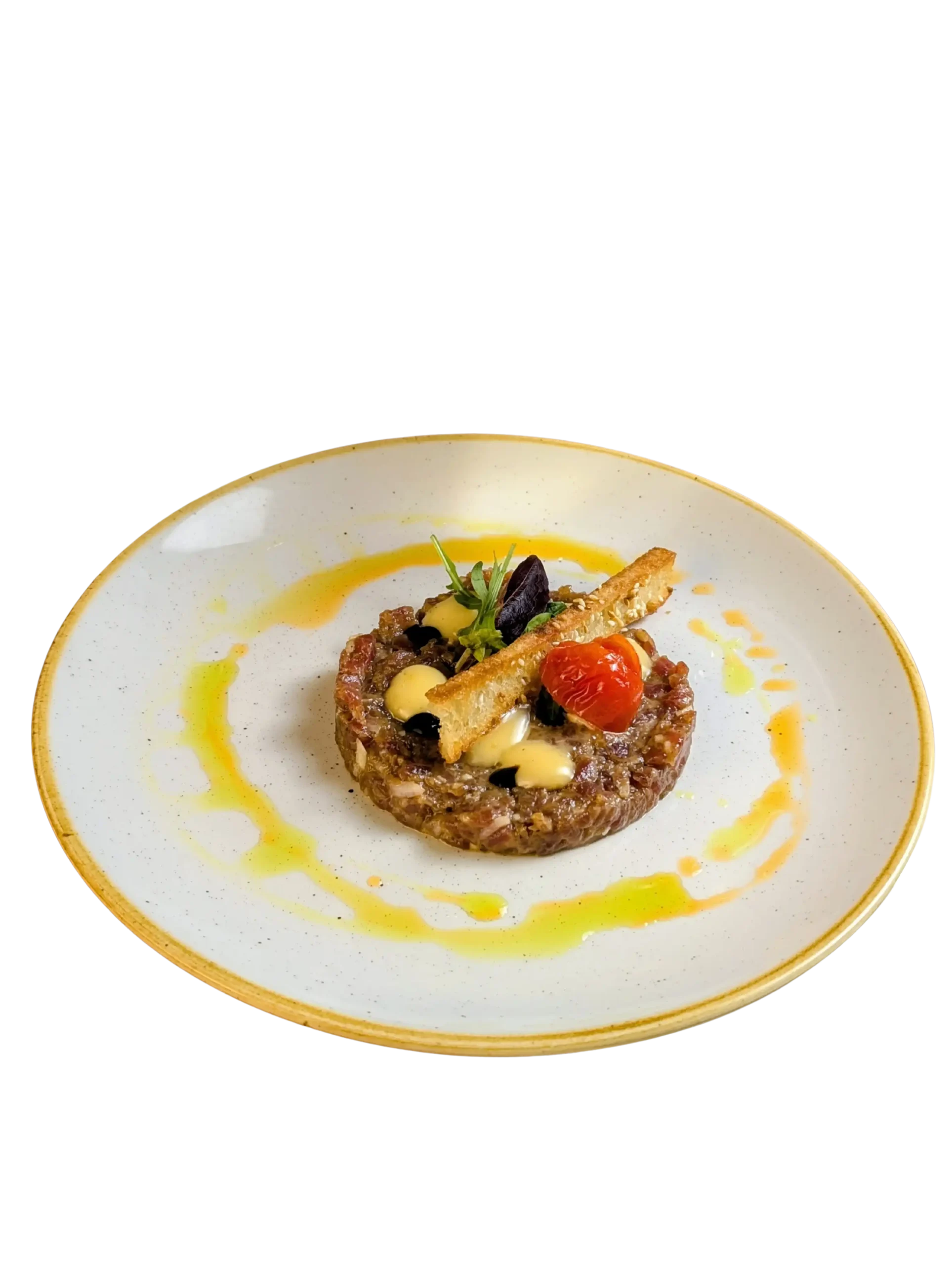 - Crispy bruschetta with San Daniele prosciutto and fresh seasonal salad mix.